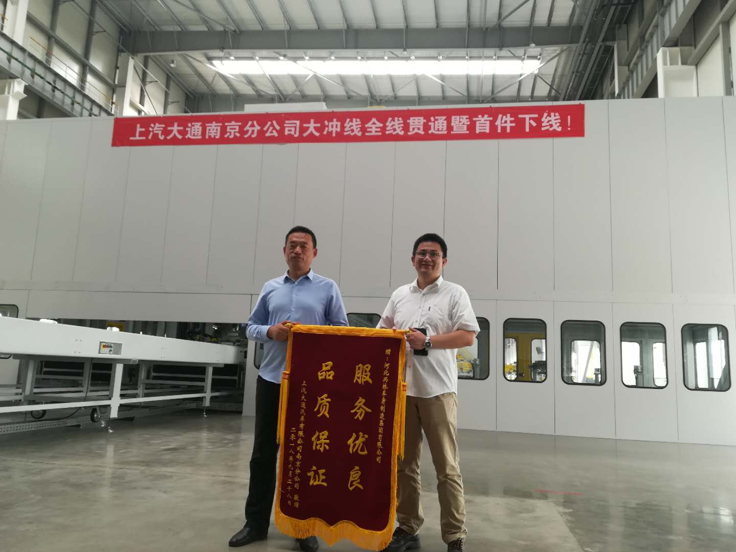 2018年9月28日,我司應(yīng)上汽大通南京分公司邀請參加上汽大通南京分公司大沖線全線貫通暨首件下線儀式。
